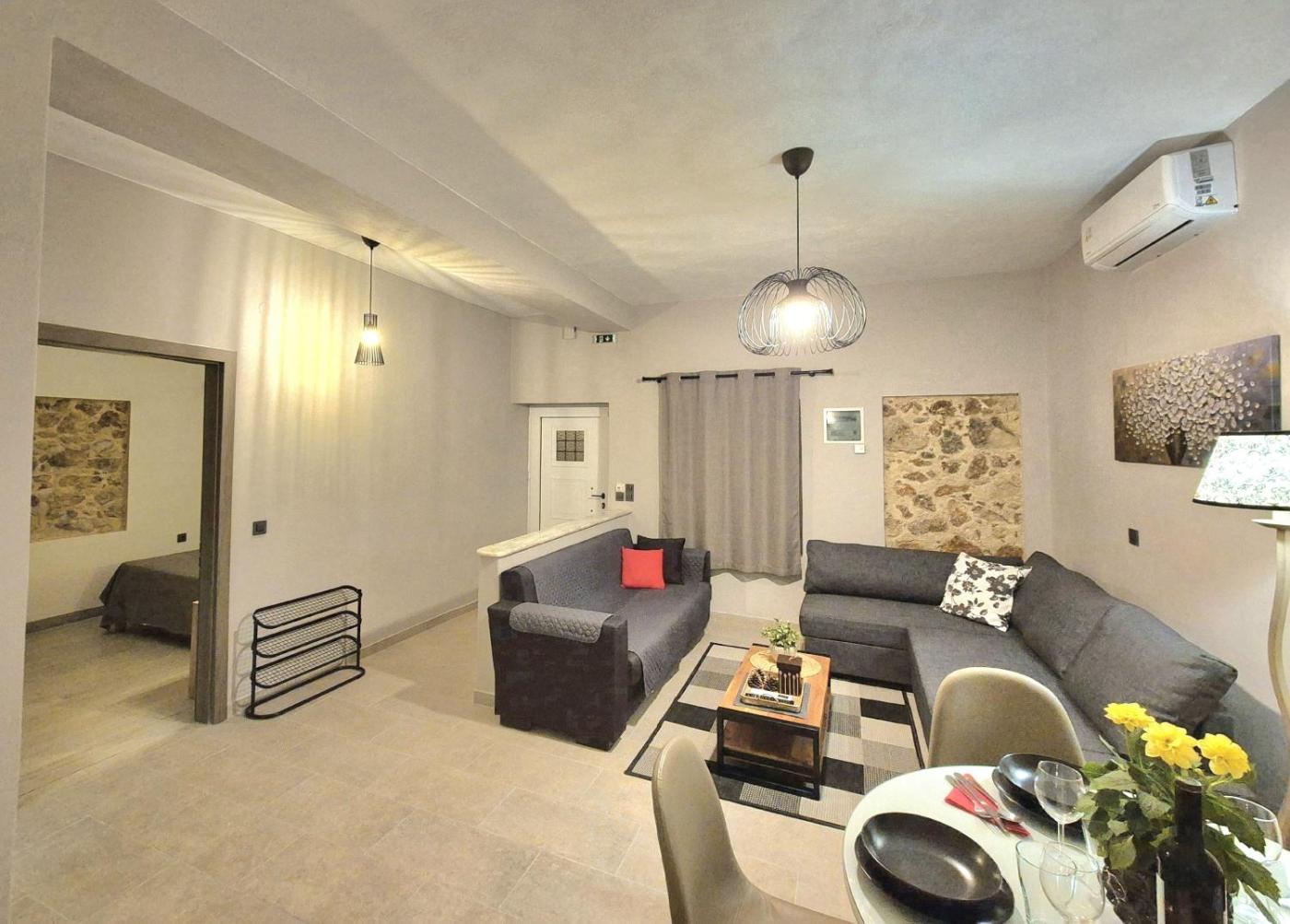 One-Bedroom House. Boasting a private entrance, this air-conditioned holiday home features 1 living room, 1 separate bedroom and 1 bathroom with a bath and a hairdryer. The well-fitted kitchen has a stovetop, a refrigerator, kitchenware and an oven. Featuring a terrace with sea views, this holiday home also features a washing machine and a flat-screen TV. The unit has 2 beds.